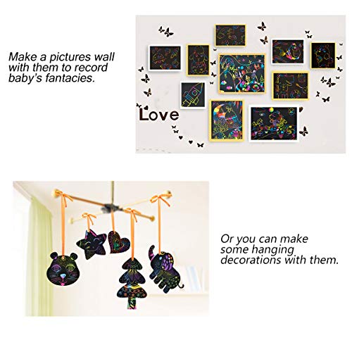 Sicuro e non tossico: Fogli art scratch sono fatti di carta da disegno di alta qualità, i gratta e vinci non sono tossici, sicuri per i bambini, e può essere collocato nella borsa quando si parte per fornire intrattenimento per i bambini.