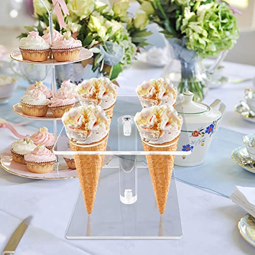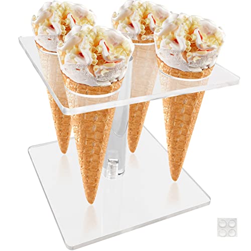 YuChiSX Porta Cono Gelato Supporto,4 Fori in Acrilico Porta Gelato Trasparente Supporto,Porta Espositore Gelato per Coni Di Cialde,per Involtini Di Sushi,Popcorn,Zucchero Filato, Patatine Fritte