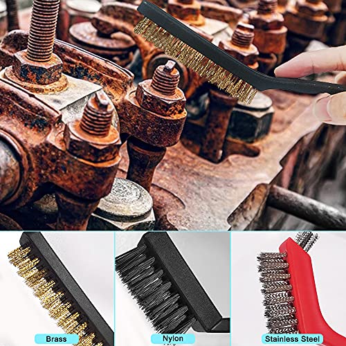 Ampio utilizzo: le spazzole in acciaio inox sono adatte per rimuovere sporco e vernice arrugginito. Le spazzole in ottone sono perfette per pulire superfici metalliche. Le spazzole in nylon sono utilizzate per pulire polvere e sporco senza graffi. La piccola spazzola metallica sulla parte superiore può aiutare a pulire angoli e oggetti irregolari.