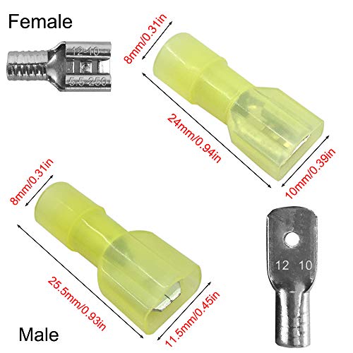 YuCool Terminali a Crimpare Kit,Connettori a Filo da 180 Pezzi, AWG 22-16, 16-14, 12-10,crimpare completamente isolati cablaggio cablaggio maschio/femmina