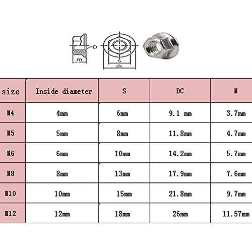 Yudesun Chiodi Viti Dado Flangiato - Dado Esagonale Flangia Acciaio Inox 304 Nylon Autobloccante Dado con Rondella M4 M5 M6 M8 M10 M12