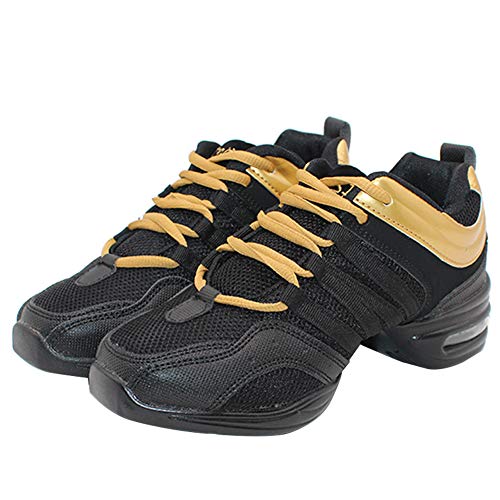 Yudesun Donna Scarpe da Ballo Sportive - Maglia Tela Pizzo Scarpe Casual Traspirante Antiscivolo Sneakers Ginnastica Jazz Moderno Walking Danza Fitness Outdoor Oro Nero (Le Scarpe Sono più Piccole)