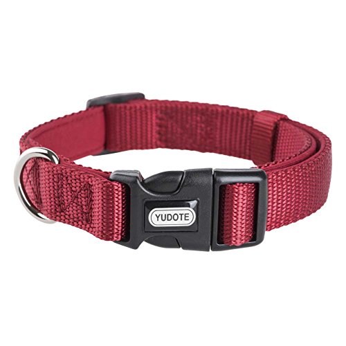 YUDOTE Collare per Cane Nylon Regolabile con Morbida Imbottitura Neoprene per Cani di Medio Taglia,Collo 30-47cm, Rosso
