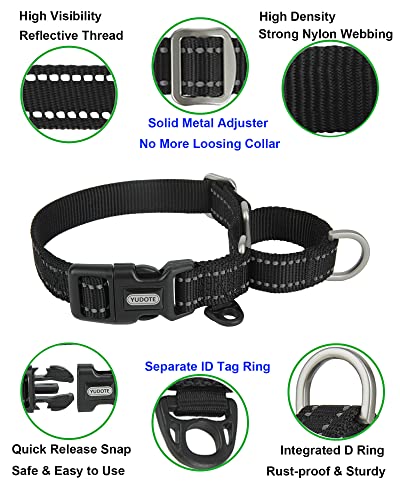 YUDOTE Collari riflettenti per cani Martingala antistrappo antistrappo con fibbia di sicurezza a sgancio rapido per cani a testa stretta facile camminare, medio, nero