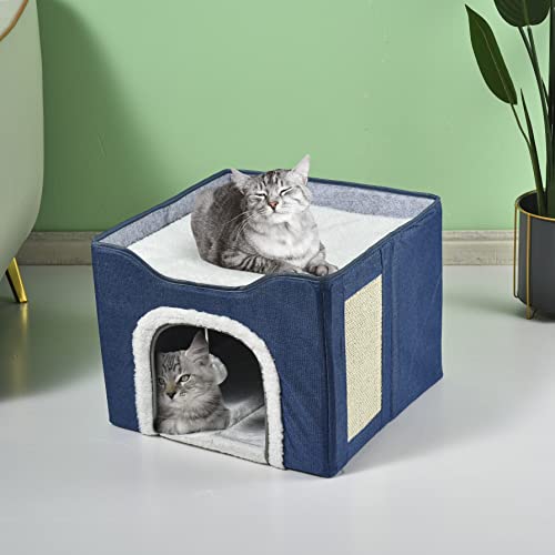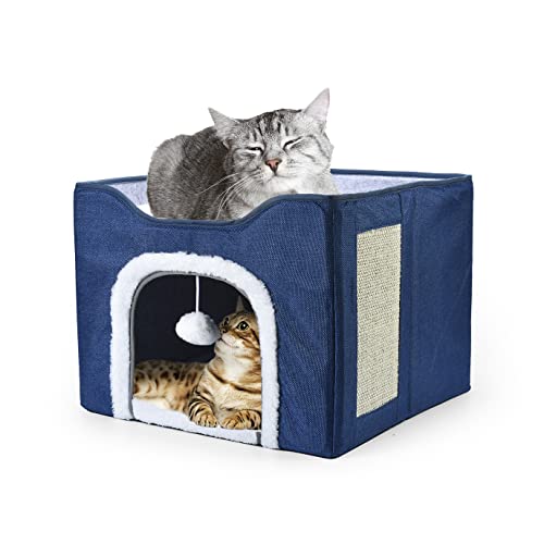YUDOXN Cuccia Gatto,Casa pieghevole per gatti con terrazza, cuccia per gatti pieghevole, per gatti e cani piccoli, palla morbida da appendere e grattare, 44 x 44 x 36 cm, blu
