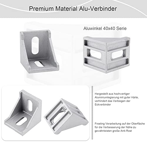 Yuechenggui Connettore angolare 40 x 40 cm, profilo in alluminio, angolo angolare, angolo di 90 gradi, in acciaio inox, materiale di fissaggio, profilo in alluminio, 8 pezzi