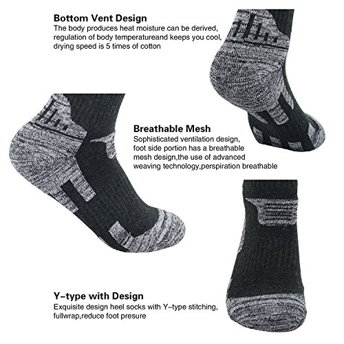YUEDGE Calze Uomo 5 Paia Wicking Anti-vesciche Multi-Prestazioni Calzini (Assortimento Grigio Scuro/Grigio Chiaro/Nero Chiaro/Azzurro Chiaro/Nero)