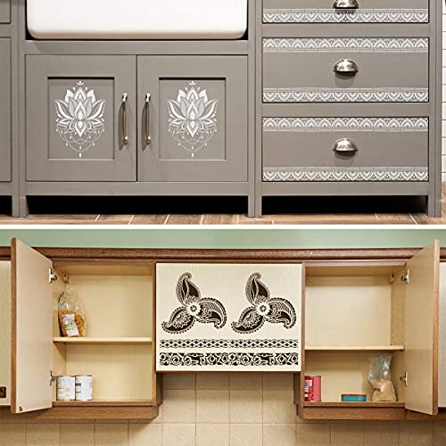 YUEMA 8 Pezzi Stencil per Bordi di Fiori, Stencil Mandala per Dipingere su Tela di Legno, Carta da Parete, Mobili, Stencil Artigianali Fai da Te Riutilizzabili