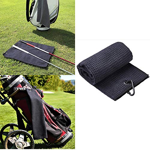 YueMing 2 Pezzi Asciugamano da Golf, Asciugamano Sportivo, Ripiegabile in Microfibra Waffle Appendere Asciugamano Pulizia di Golf con Clip Golf Yoga Palestra da Campeggio 40 * 60CM