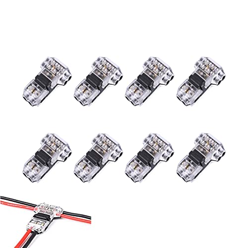 YUEMING 8 Pezzi Connettori Filo, Connettori Bassa Tensione Filo T Rubinetto Cavo Elettrico20/22 AWG Alette Elettriche con Connessione di Cablaggio Senza Saldatura 2 Pin per Illuminazione LED