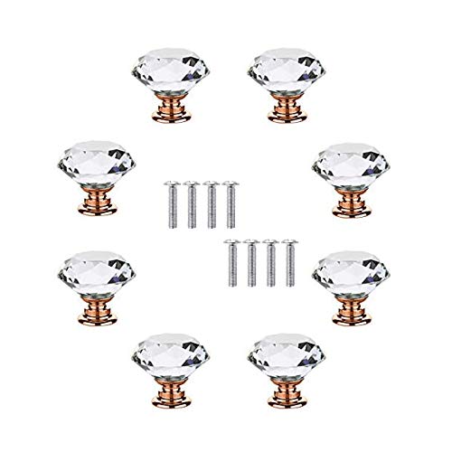 YUEMING 8 Pezzi Pomelli di Cristallo Manopole, Pomelli Cassetti Mobili Forma Diamanti con Viti Set, 30mm Maniglia Porte per Cucina Armadio Comodino Armadietti Cassetti Accessori Decorazione