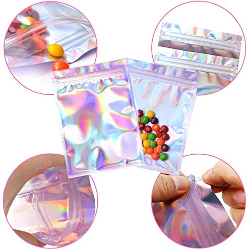 YUEMING 100 Pezzi Sacchetti di Prova dell'Odore Risigillabile, 10 * 15cm Sacchetto con Chiusura Zip Stagnola Borsa Piatta a Chiusura Lampo per Conservazione dei Cibi Caramelle, Gioielli, Vite