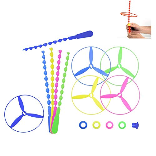 YUEMING 10 Pezzi Twisty Volante Piattini, Piattini Volanti, Pull String Helicopte, Lanciati A Spirale Di Lancio Giocattoli Educativi Giocattoli Per Bambini- Colore Casuale