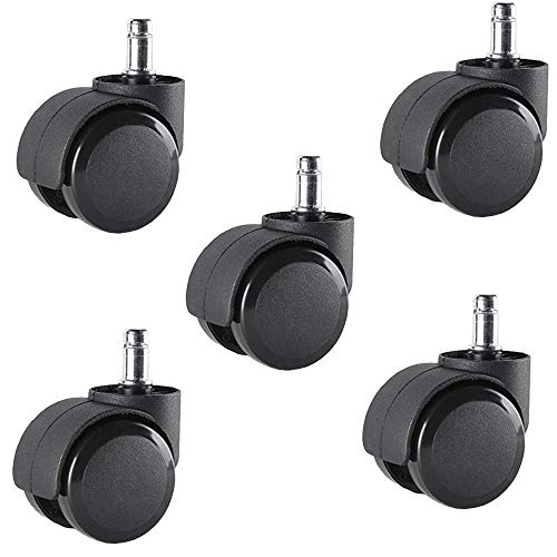 YUEMING 5 x Rotelle per Sedia da Ufficio,Universale Standard 11mm x 22mm, Rotelline Ricambio sedie girevoli Senza Freno,per Pavimenti Duri, Parquet, Laminato, Piastrelle (Nero)