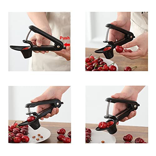 YUEMING Snocciolatore Ciliegie,Strumento denuclear Cherry Snocciolatore Ciliegie e Olive con Asta di Acciaio Inox e Tazza di Supporto in Silicone Morbido (nero)
