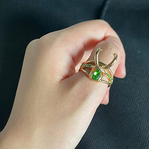 Yuemuop 1 Set Anello Loki, Anello Tre in Uno, Anelli Impilabili in Cristallo Verde, Loki Ring per Donna Uomo Marvel Fans Anello Regalo Gioielli Adatto a Bambini