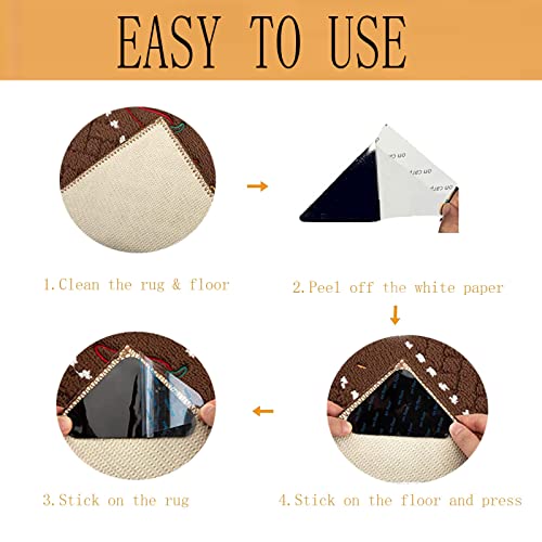 Yuemuop 12 Pezzi Adesivo Tappeto Triangolo, Fermatappeto Antiscivolo con Forti Stopper, Angoli Antiscivolo per Tappeto Adesivo per Moquette Lavabile e Riutilizzabile