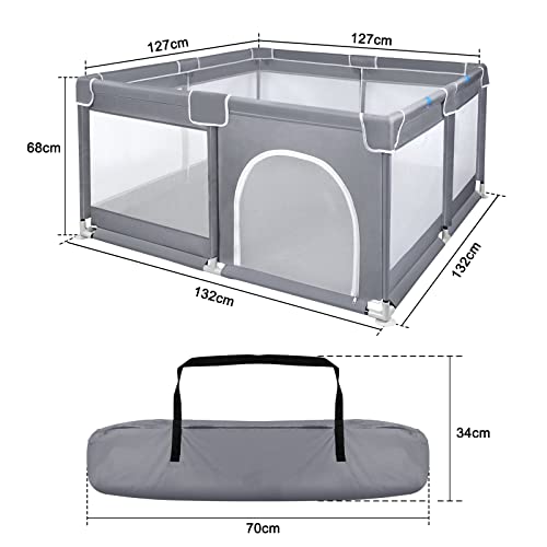 YUENFONG Barriera di Sicurezza per Box per Bambini, Ampio Parco Giochi di Sicurezza, con Base Antiscivolo e Rete Traspirante, Grigio scuro(127x127x68cm)