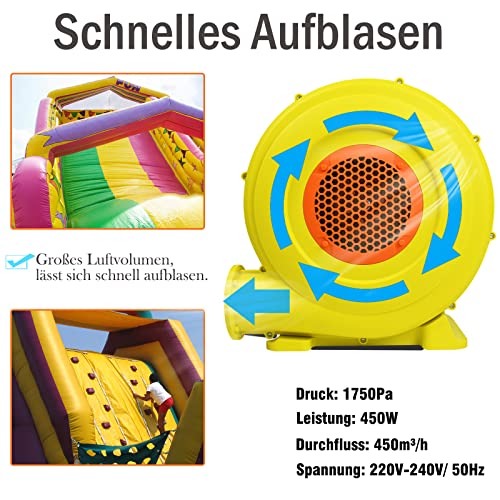 YUENFONG Pompa di Aria Elettrica Portatile per velificazione ad aria 220-240 V Ventilatore ad aria gonfiabile per giocattoli gonfiabili 450W(450m³/H 1750Pa, Gelb)