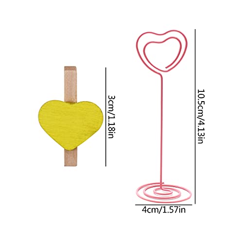 Memo Foto Clip,Yueser 25 Pezzi Clip Segnaposto in Metallo con 20 Mini Mollette in Legno Colored Mini Forma di Cuore Mollette per Foto Biglietti Matrimonio Fai da Te Decorazione