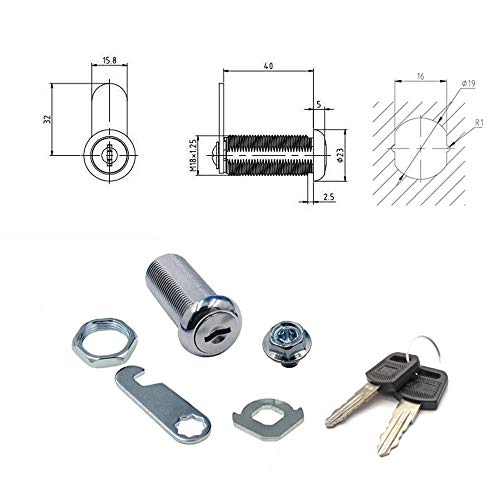YUEWO Drawer Cabinet Locking 19mm x 40mm Thread Security Cylinder Cam Lock w 2 Keys