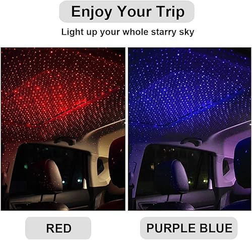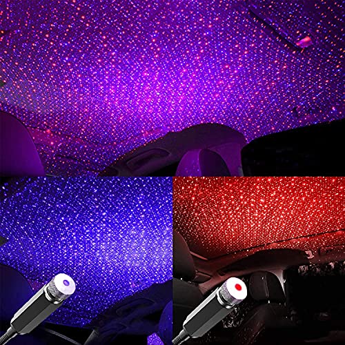 Yufana 2 pz Lampada notturna a stella per tetto auto,Proiettore a stella per tetto auto USB regolabile,USB Atmosphere Night Light,per auto soffitto camera da letto(Blu viola e rosso)