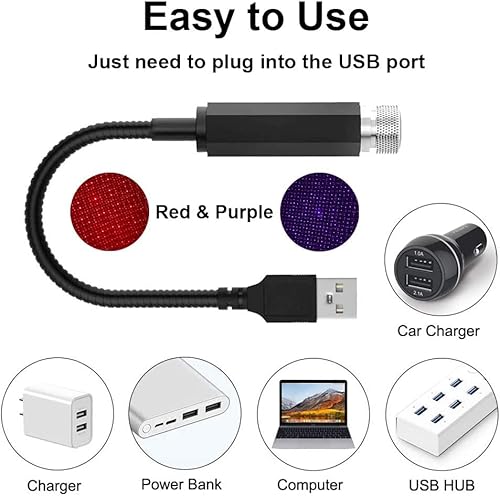 【Ampiamente usato】: le Lampada notturna a stella per tetto auto sono dotate di interfacce USB, possono essere utilizzate luce notturna per l'arredamento della stanza,arredamento per auto,luce notturna USB per computer,power bank, carica a parete con interfaccia USB.