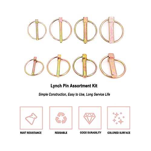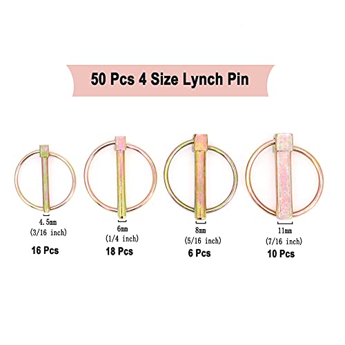 【Il pacchetto include】 Totale in 50 pezzi Lynch Pin di 4 dimensioni. 4,5 mm x 16 pezzi, 6 mm x 18 pezzi, 8 mm x 6 pezzi, 11 mm x 10 pezzi.