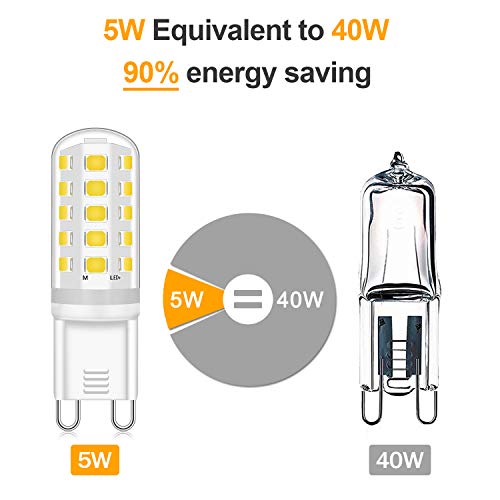 Risparmio energetico ed ecologico: Questa lampadina a LED G9 è la sostituzione perfetta delle lampadine alogene convenzionali. RISPARMIO DI DENARO - Come risparmiare il 90% di bollette elettriche? Scegli questa lampada da 5W g9 dimmerabile! Sostituzione perfetta per le lampadine a incandescenza e alogene da 40W 50W con solo il 10% di energia. Inoltre, 30.000 ore di durata di vita e bassi costi di manutenzione.