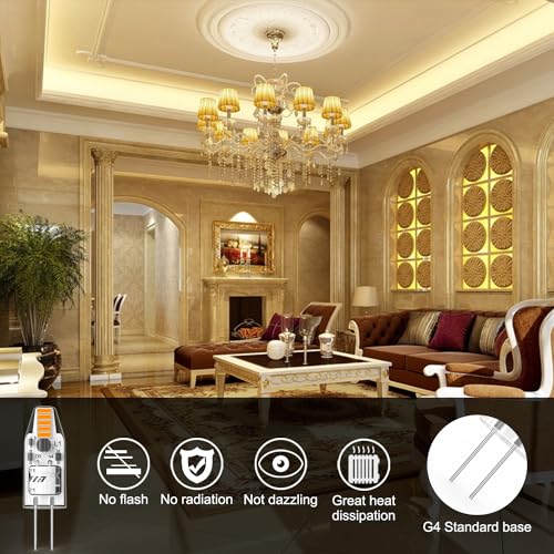 OTTIME PRESTAZIONI: Le lampadine a LED G4 da 2700k Bianco Caldo sono molto simili alla lampadina alogena G4, senza sfarfallio offrono a te e alla tua famiglia un ambiente caldo e confortevole. Facile da installare, base G4 standard per lampadina con base G4, sostituzione alogena a led da 10w.