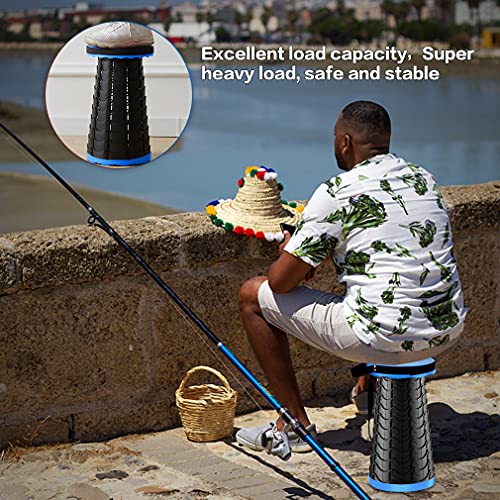 Yuirshion Sgabello pieghevole Portatile, Sgabello Campeggio Sgabello Telescopico da Esterno con Cinturino Regolabile, Sgabello Telescopico per Campeggio, Pesca, Escursione, Carico Massimo 200 KG(blu)