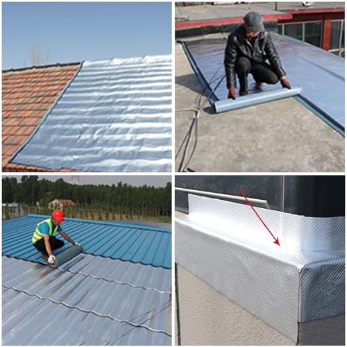 【Materiale durevole】: la membrana impermeabile è realizzata in asfalto modificato di alta qualità + foglio di alluminio ispessito. È impermeabile, non si restringe, ha una forte resistenza alla trazione, è resistente all'invecchiamento e non ha odore. Il supporto in foglio di alluminio riflette la luce solare, ha un certo effetto rinfrescante e ha una buona tenuta, impermeabilità, isolamento termico e altre funzioni.