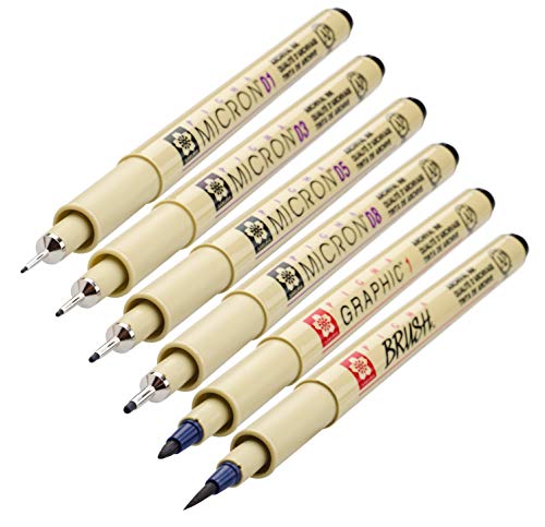 Yukama Sakura Micron Art Edition - Set di 6 Penne a Punta fine, 4 Micron + 1 Pennello Brush + 1 Graphic #1