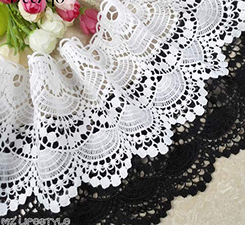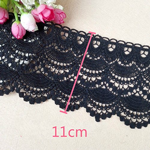 Yulakes bordo in pizzo di cotone bianco lavorato all'uncinetto, lunghezza 2,74 m, larghezza 11-12 cm, per lavori di cucito, artigianato, decorazioni per matrimoni, scrapbooking, scatole regalo, Nero