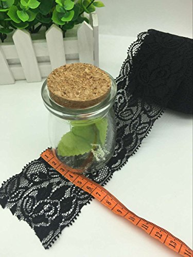 Yulakes, nastro in pizzo floreale bianco e perline lungo 9,1 m, elasticizzato, nastro in pizzo intrecciato per decorazioni da matrimonio, per la sposa, nastro per artigianato largo 7 cm Black