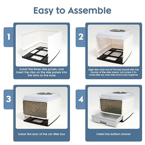 YULEYU Lettiera per gatti con coperchio, pieghevole, con vassoio estraibile, pala, spaziosa per gatti fino a 15 kg, CATBOX01, bianco