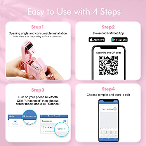 YuLinca Stampante Etichette Bluetooth Etiquetadora Termica Mini Portatile Etichettatrice con Nastro Adesivo D11 Label Maker, compatibile con iOS e Android (rosa)