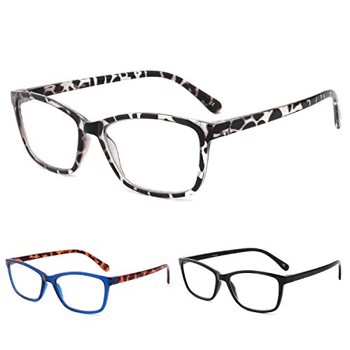 Yuluki Confezione da 3 occhiali da lettura, leggeri e comodi, rettangolari, per uomini e donne, occhiali alla moda +1.0