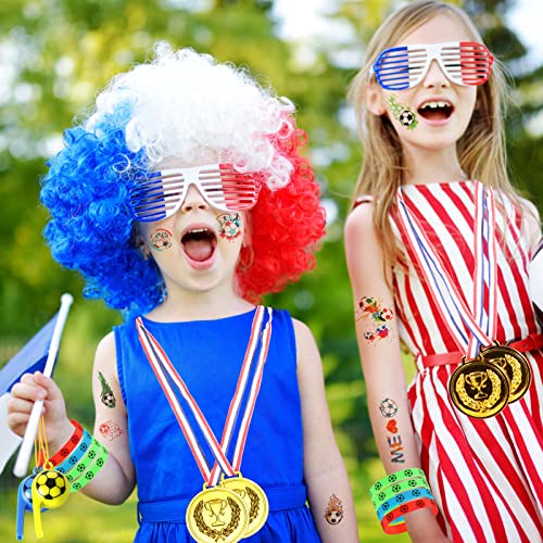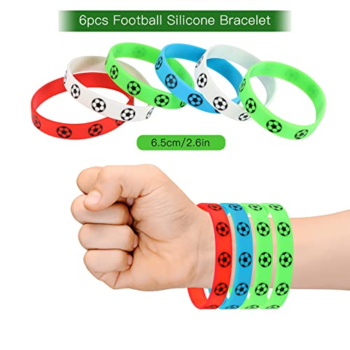 ⚽【Set Regalo Calcio Super Valore】: riceverai - 6 pezzi di fischietto per pallone da calcio con corda (colore casuale), 6 pezzi di braccialetti in silicone da calcio (1 rosso 2 bianco 1 blu 2 verde), 6 pezzi di portachiavi da calcio in gomma morbida in PVC, 6 pezzi di pallone da calcio Penne a sfera per modellare, 6 medaglie commemorative da 6 cm, 10 tatuaggi da calcio per bambini
