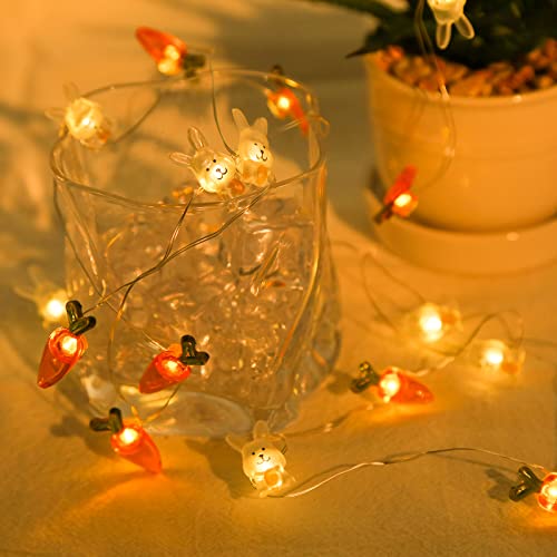 Yumcute Catena di Luci con 20 Coniglio + Carota ed Fata di Pasqua Micro LED Bianco Caldo a Pile per Interni Decorazioni Pasquali