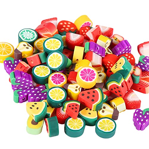Yumcute 100 Pz Perline Fiore di Frutta,Perline Per Braccialetti,Perle di Argilla Polimerica,per Creazione di Gioielli,Orecchini,Collane(Nuovo Stile)