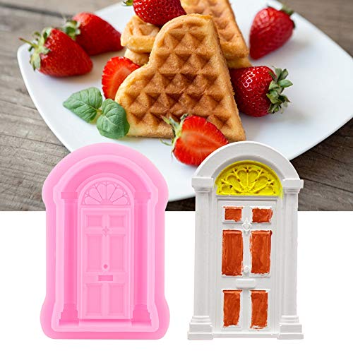 YUMILI 2 pezzi Stampo in silicone per porta classica, stampi in silicone con bordo per torta per finestra Stampo da forno per decorazione di torte fondente Cupcake Cioccolato (Rosa)