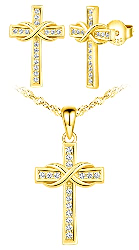Yumilok-Cross Infinity Symbol Zircone Wings Combination S925 Orecchini in argento sterling Simbolo dell'infinito Ciondolo in argento sterling croce adatto per le donne