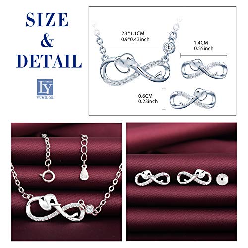 Yumilok Parure di gioielli da donna con ciondolo a forma di elefante, orecchini in argento sterling 925 e Argento, colore: argento, cod. Y40-099-silver