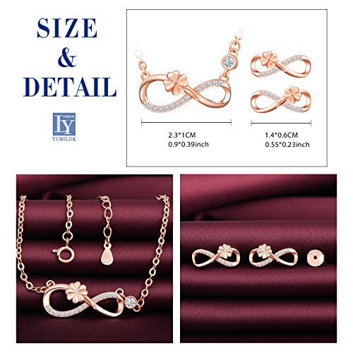Yumilok Parure di gioielli da donna con quadrifoglio, quadrifoglio, quadrifoglio portafortuna e orecchini da donna in argento sterling 925, Argento sterling,
