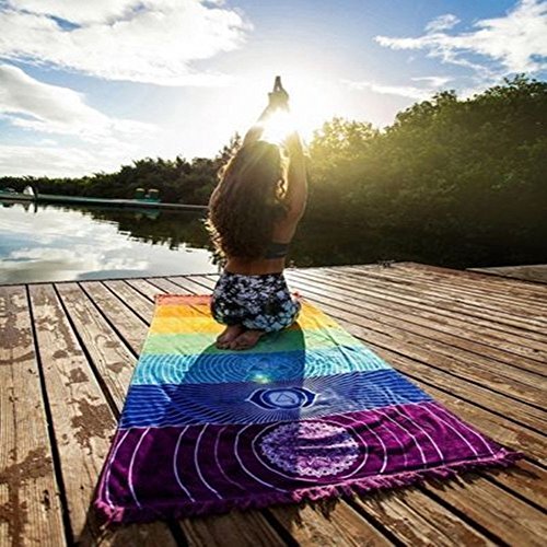 YUMOMO Indiano arazzo Yoga Asciugamano, 100% -Cotton, Arcobaleno, Lunga 149,9 cm (150 CM) x 76,2 cm (75 cm) Larghezza