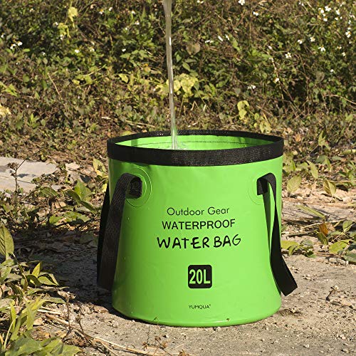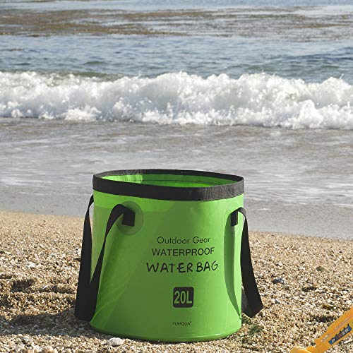 YUMQUA Secchio pieghevole 20L, Secchio pieghevole portatile Contenitore per acqua Lavabo per campeggio Pesca Escursionismo Viaggi Sopravvivenza all'aperto Giardinaggio Lavaggio auto (verde)