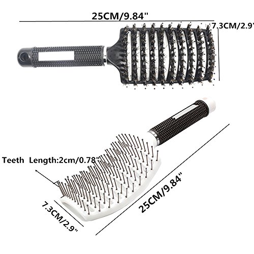 Yumsum - Set di spazzole per capelli con setole di cinghiale, flessibili e aerate, Spazzola massaggiante e districante per capelli lunghi e ricci