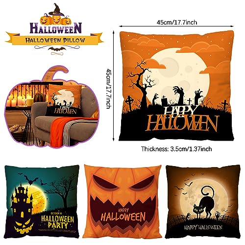 YumSur 4 federe per cuscino di Halloween, arancione e nero, con scritta "Happy Halloween", in lino, per divano e letto, decorazione