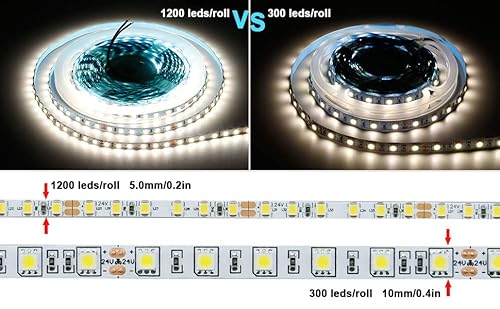 【1200 LED e alta luminosità】perline LED SMD2835 ad alta densità da 1200 LED, più delle normali strisce LED (300 LED). Maggiore efficienza luminosa e luminosità rispetto alla normale striscia luminosa SMD 2835.
